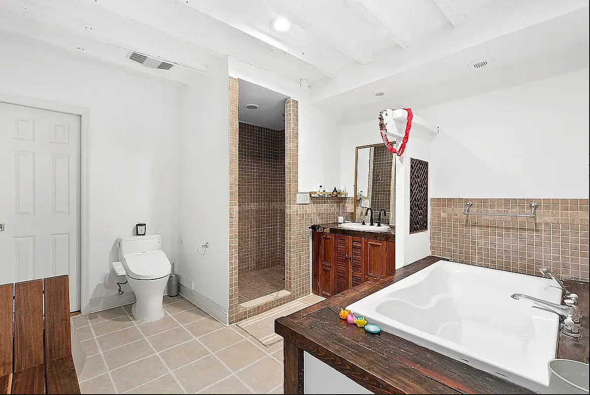 The lower level adds real flexibility and feels like an artist loft with wood beamed ceilings. A custom cut-out brings in light and connects the space, so it doesn't feel like a typical basement. It works as a den, office, gym, or all three depending on how you want to use it.