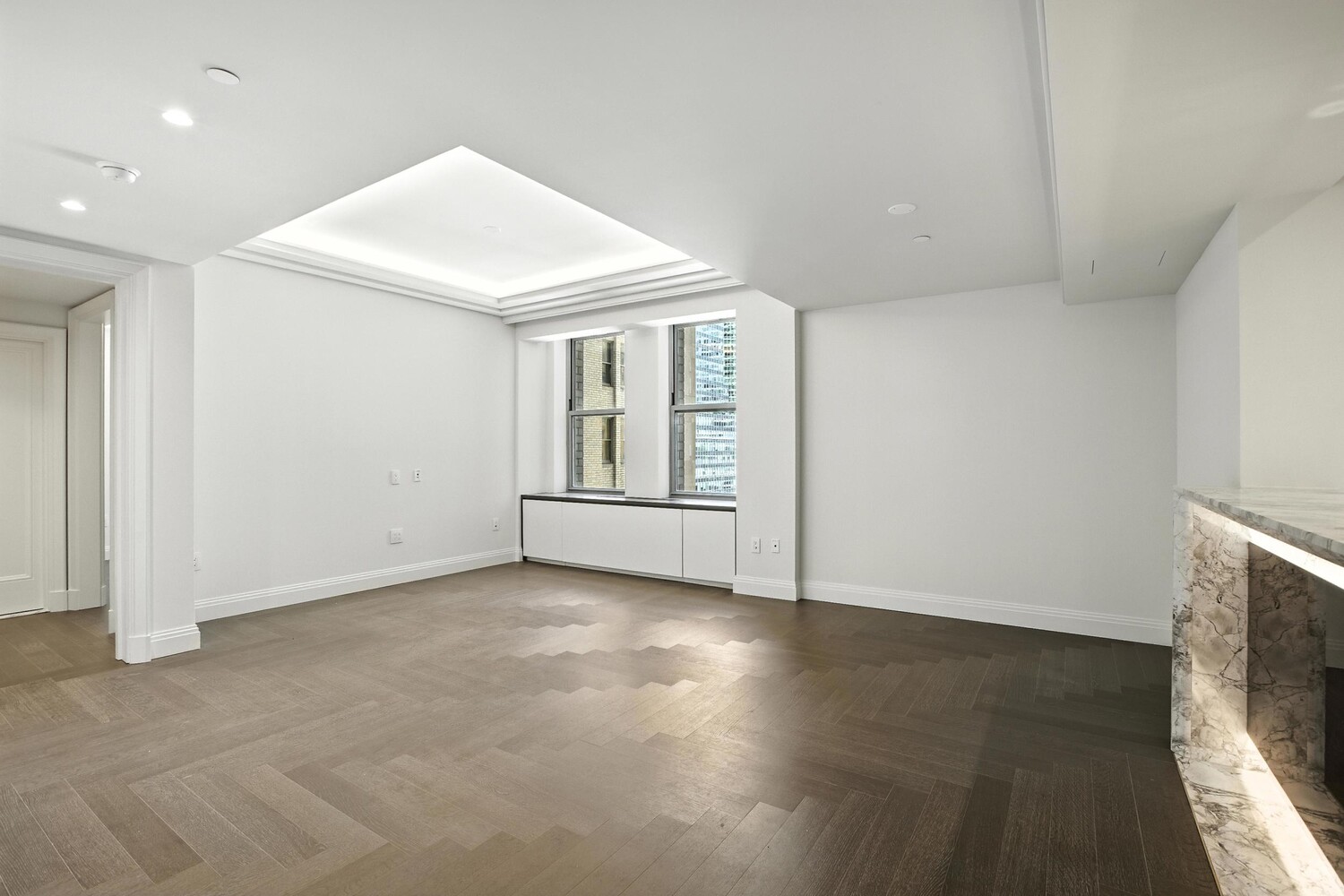 The grand entry foyer is marble with brass inlays, & you're greeted by design details rarely seen in new construction: chevron-patterned hardwood floors, coved ceilings, oversized paneled doors, and seamless keyless entry. The owner also added coved lighting in both rooms. Every inch is crafted for comfort, privacy, and prestige-including a dedicated Concierge Closet for secure and discreet deliveries.