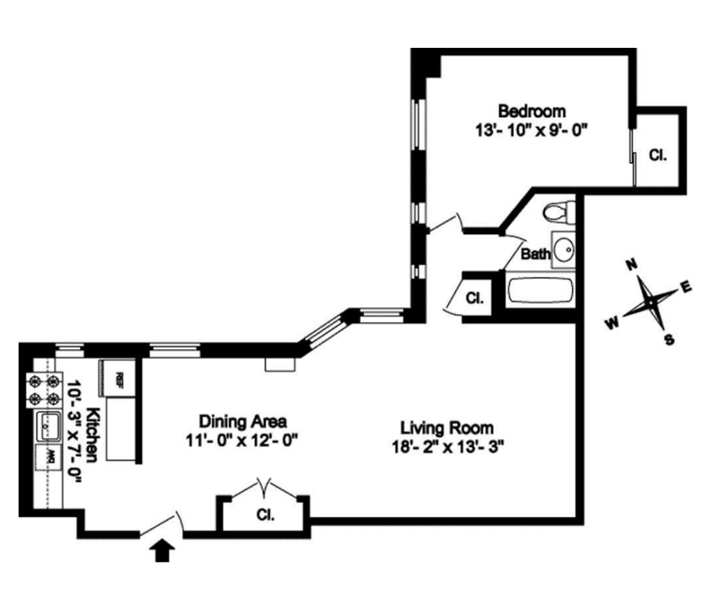 Apartment 4A at 430 Clinton Avenue is a huge 780 square foot one bedroom apartment with windowed kitchen and separate dining and living area. The bedroom easily fits a king bed and space for full set-up with dresser and desk and lots of closets along the wall.