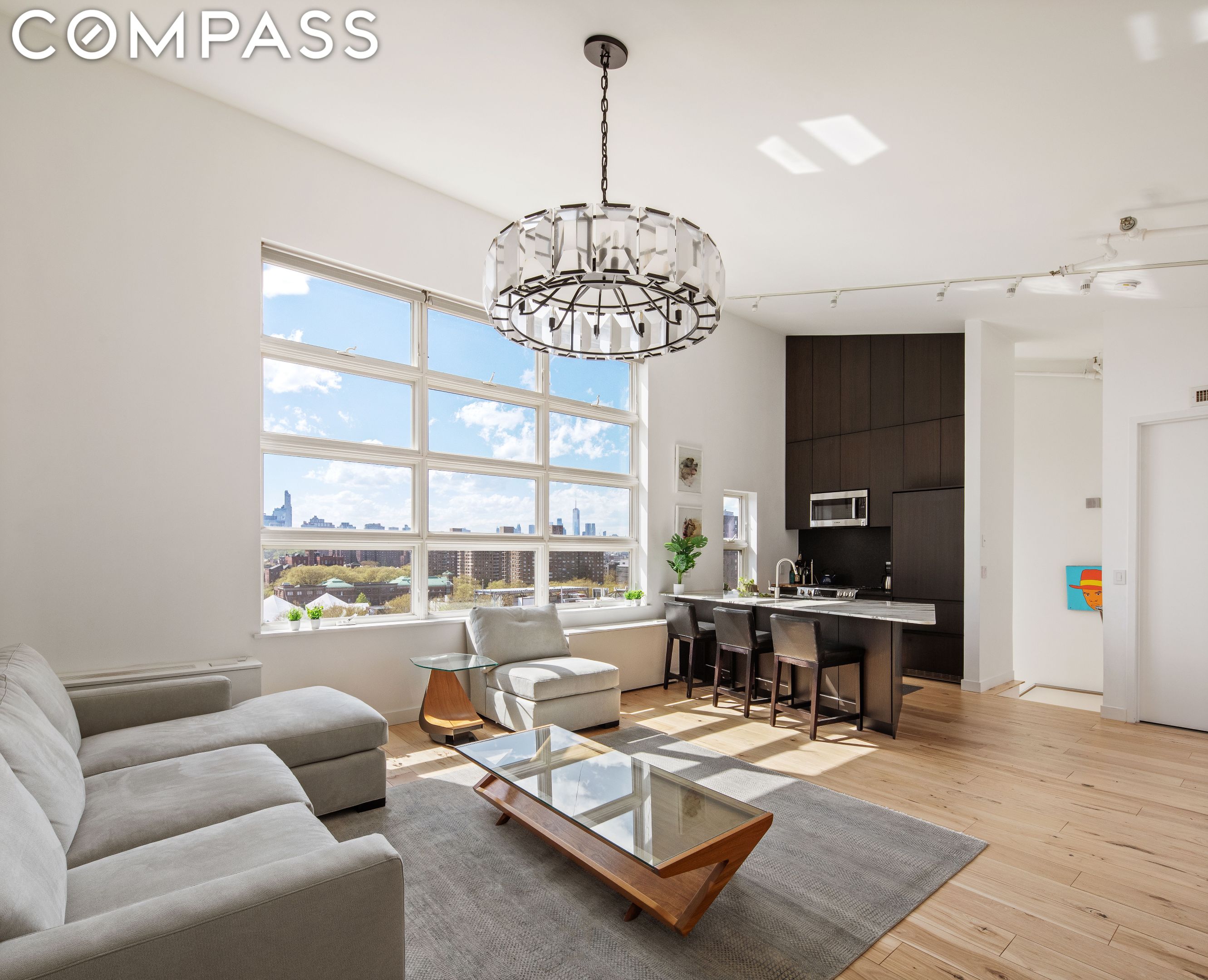 With soaring ceilings, sunlit interior, and flexible living spaces, there is truly nothing else on the market like this! The apartment has captivating western views of downtown Brooklyn, and downtown Manhattan including the iconic World Trade Center and eastern views of Brooklyn.